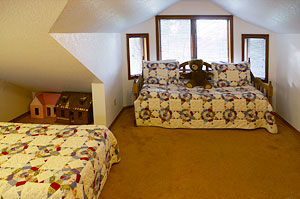 This 5400 square foot home is our most spacious. Featuring 2 master bedrooms, three fireplaces, two TVs, and 3/4 wraparound balcony.